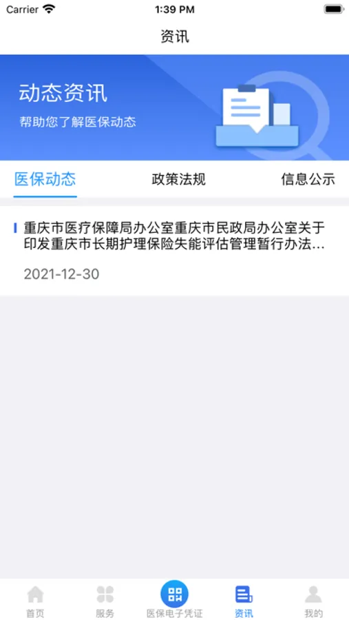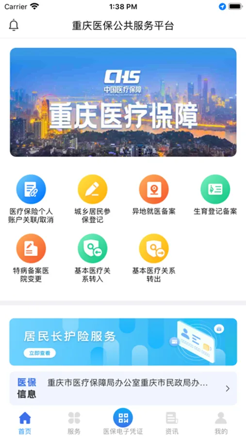 重庆医保App,为公众提供统一使用公共服务的入口,面向参保人提供政策查询、信息查询、业务办理、移动支付、长护险申请、评估、服务、评价等服务,实现医保电子凭证领取和权益享受,满足全市医疗保障服务线上通办