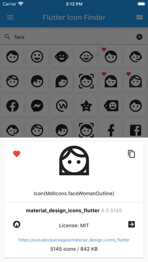 Quickly find Flutter icons from multiple icon packages.