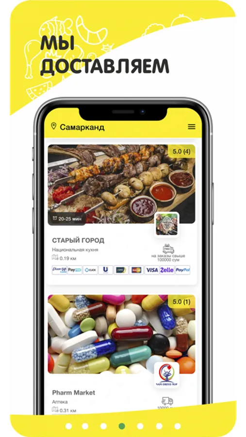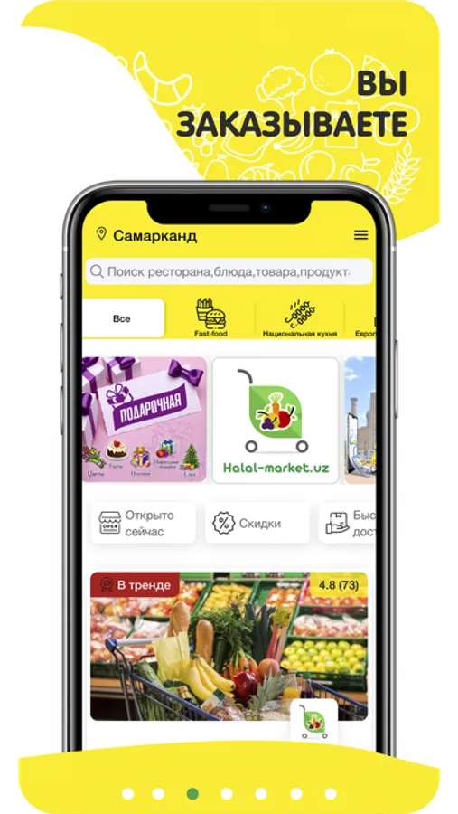 Мы создали единую современную и очень удобную онлайн платформу (площадку) для продуктовых маркетов, товарных магазинов, ресторанов/общепита, то есть онлайн “базар”.