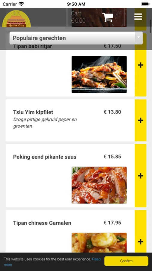 Bestel de lekkerste Chinese gerechten bij Golden City. Kies uit Chinese maaltijden , een snack, en nog meer verse producten.