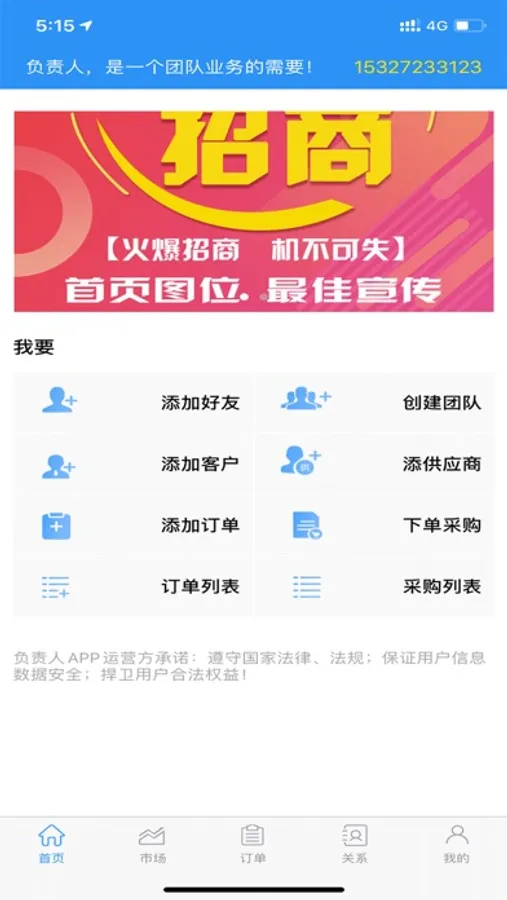 主要功能:添加好友、创建团队、添加客户、添加供货商、添加订单、下单采购、订单列表、采购列表等。