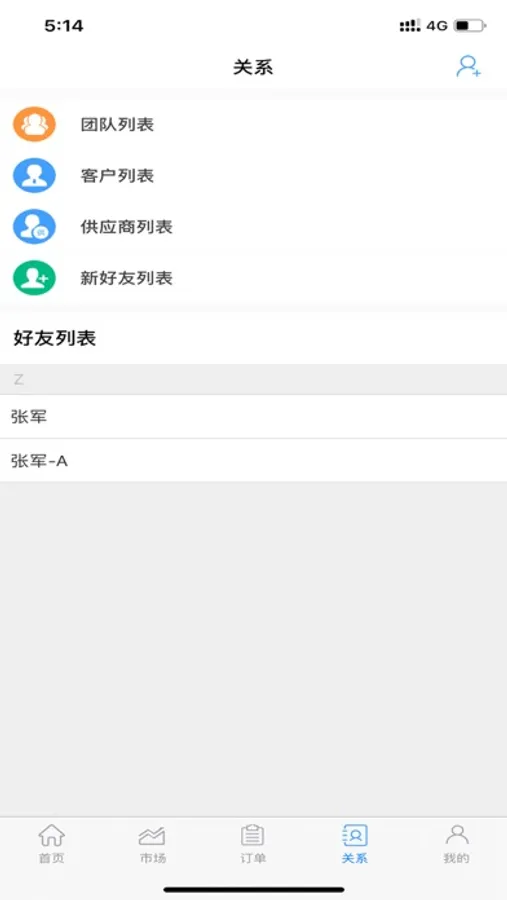主要功能:好友列表、团队列表、客户列表、供货商列表等。