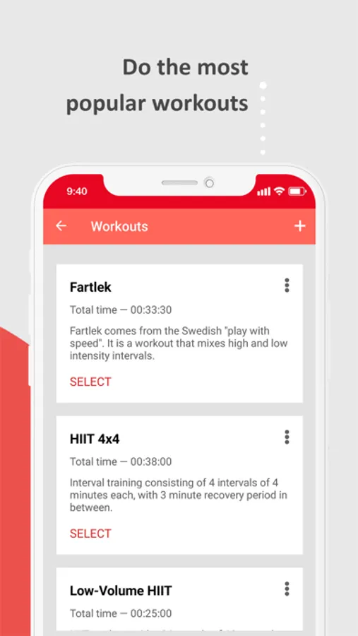 - Choose from popular workouts like HIIT, Aerobic Threshold, Fartlek, Polarized and more