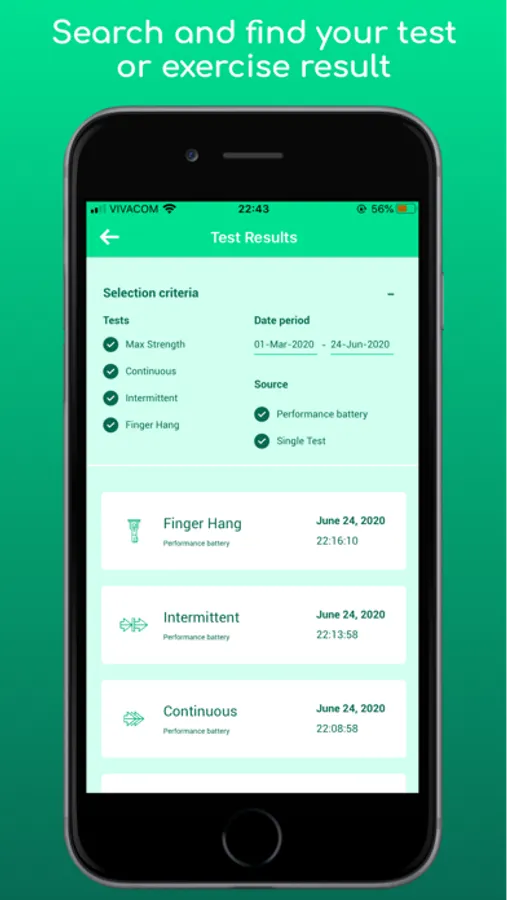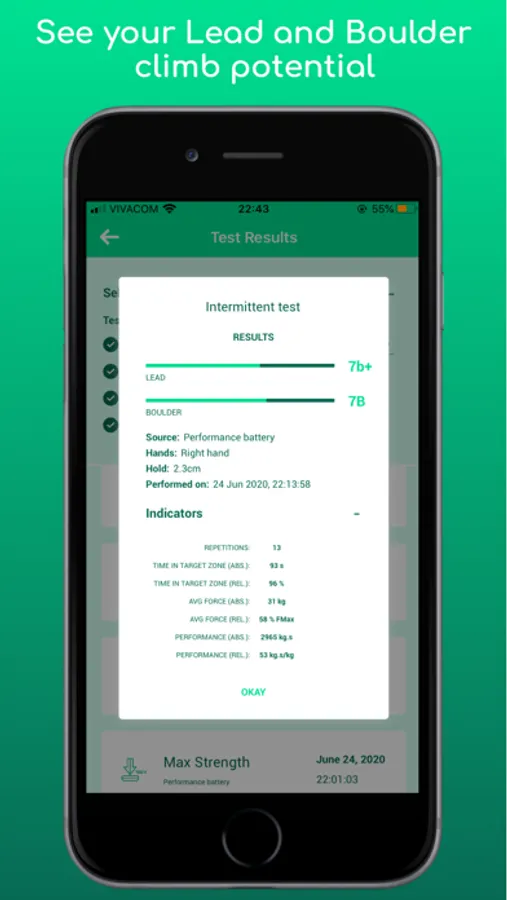 The Climbro app stores all test and exercise results in the Cloud so you don’t need to worry when you change your mobile device.