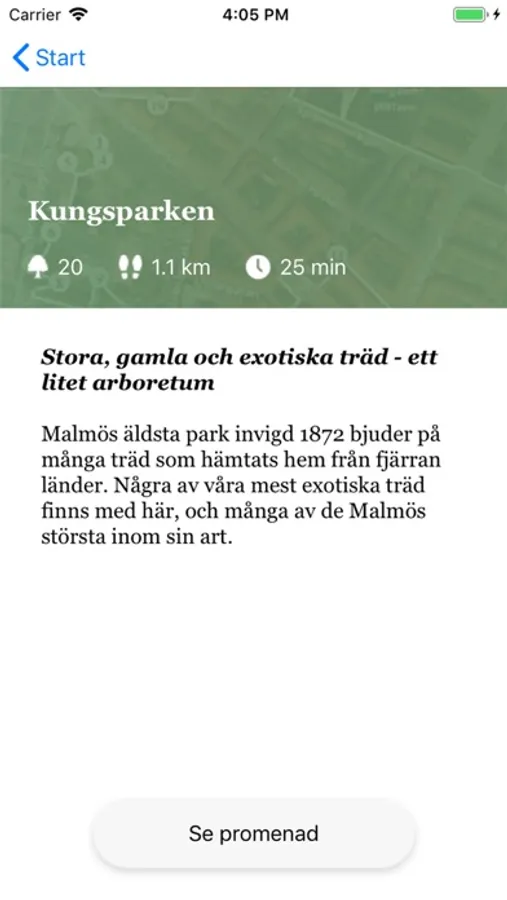 Möt Malmös intressanta och vackra träd! 12 olika, spännande trädpromenader med vardera 20 träd. Promenaden tar dig runt till olika delar av Malmö: till stadens parker, stadens centrum eller till några äldre och nya bostadsområden.