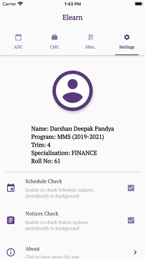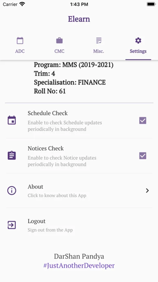 Elearn App helps you to check some common info. available on Elearn Portal without having to access the Portal website & login again and again!