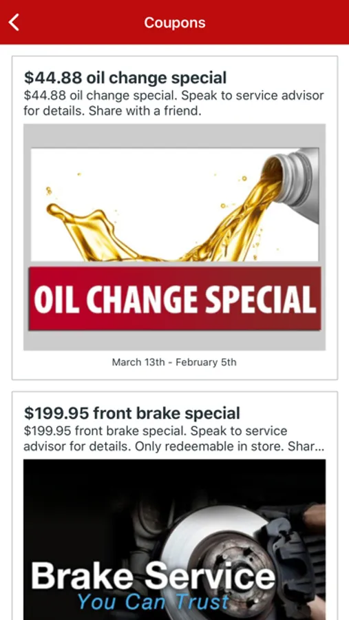 - Loyalty Rewards: earn a free oil change by stamping your digital card each time you visit our service center and track your rewards.