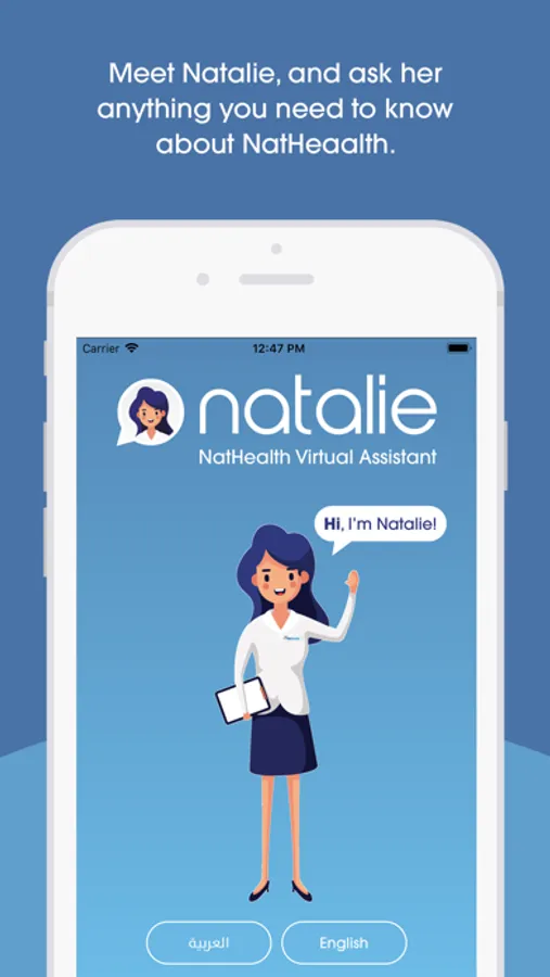 Natalie is a virtual assistant Chabot app.and an automated program that interacts with customers like a human would and cost little to nothing to engage with. This App. is customized exclusively for NatHealth members in order to deliver the highest quality of service through the modern technology and the digital transformation.