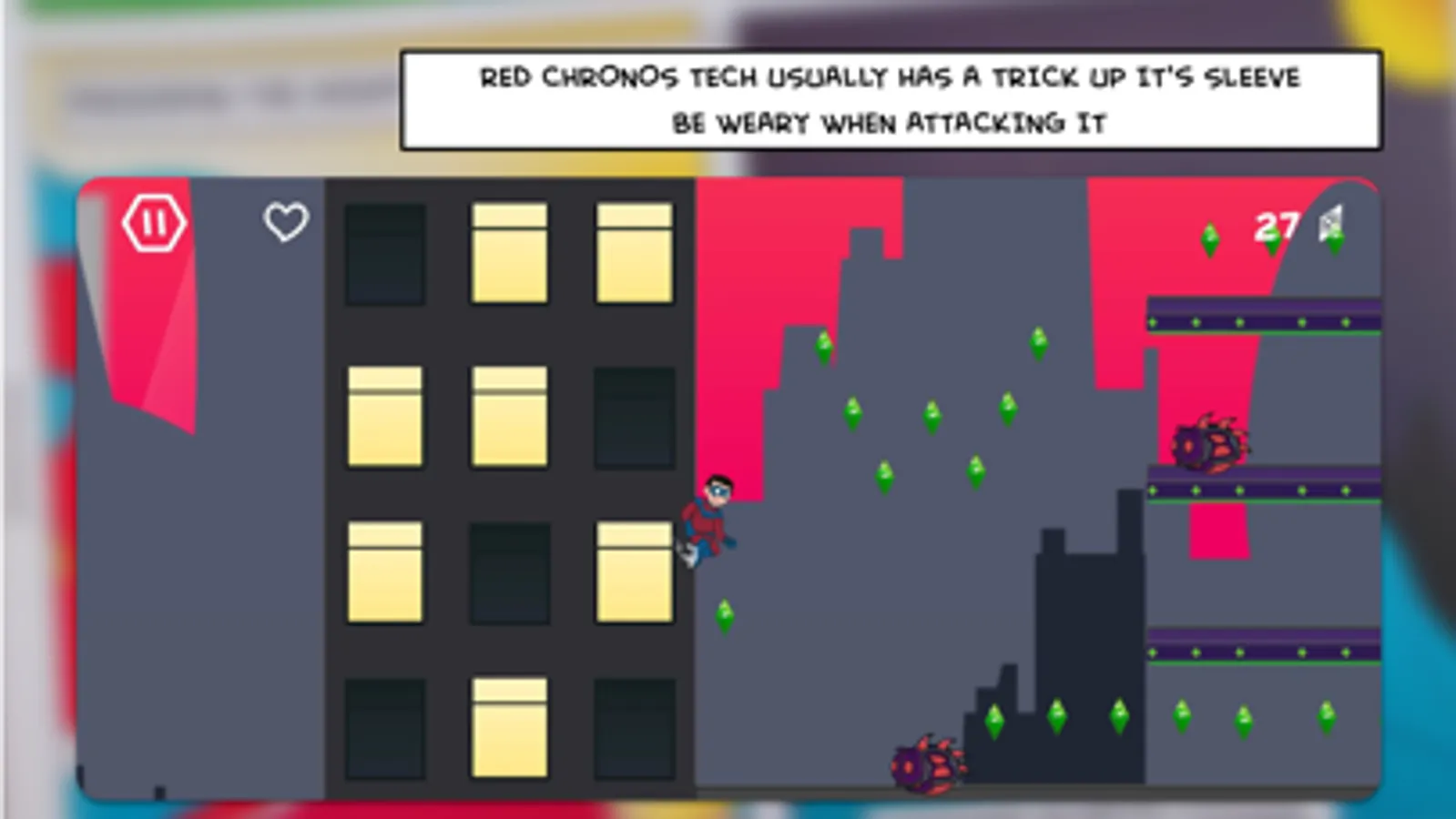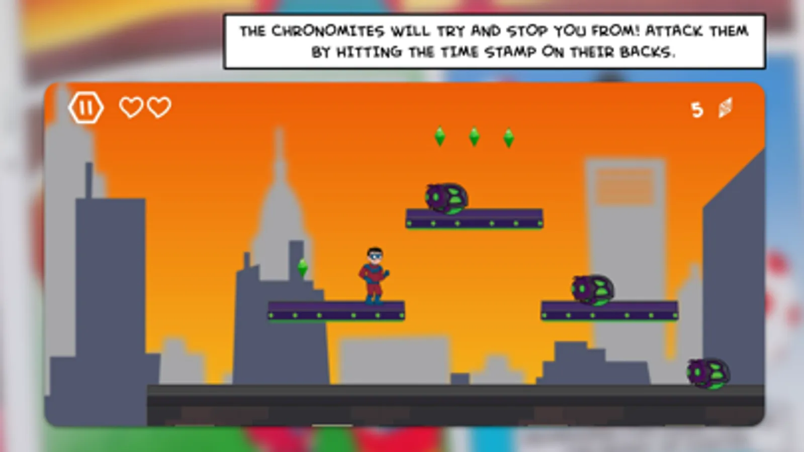 Help the Boy Wonder jump back through time by collecting the time gems and send Chronomites back to the main timeline, and ultimately defeat Chronos and save Matman!
