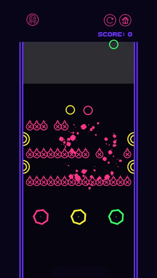 Work your way through 36 challenging levels. Strategically drop bouncing balls to hit three goals and move onto the next level! But watch out! Various moving, bouncing, and exploding hazards make finding the correct time and location to drop a challenge.
