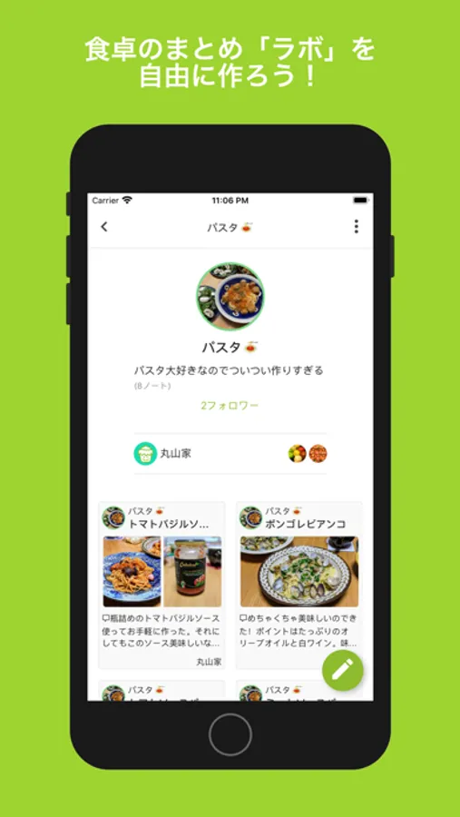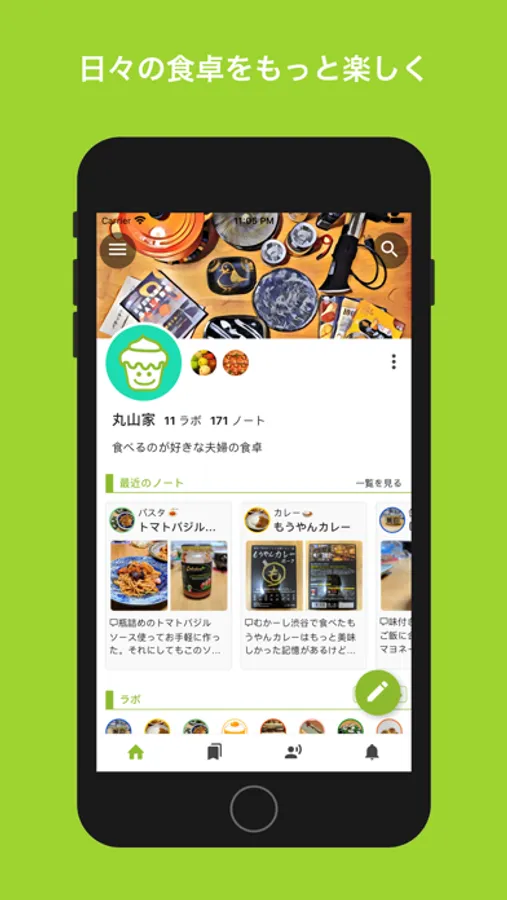 食卓ラボでは「ラボ」と呼ばれる自分の食卓に関するまとめを作ります。例えば「おうちパスタ」「好きな食器」「レトルトカレー」など、手作り料理に限らず自由に作ってください!そして、食卓メンバーと一緒に写真や感想をラボに書き溜めていきます。