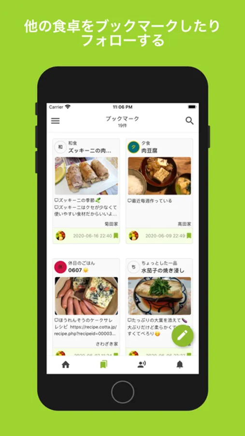 他の食卓で気になったものはブックマークしたり、好みのラボをフォローすることができます。ブックマークやフォローは食卓メンバーで共通なので、一緒に見て楽しむことができます!