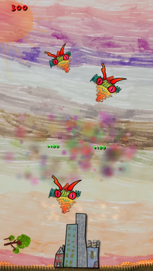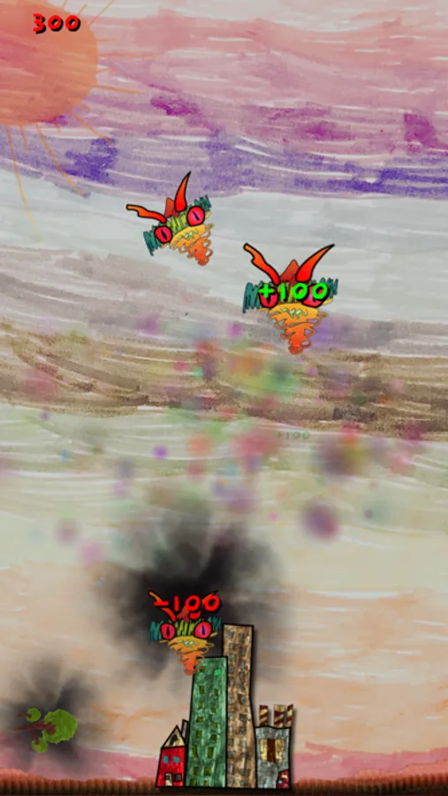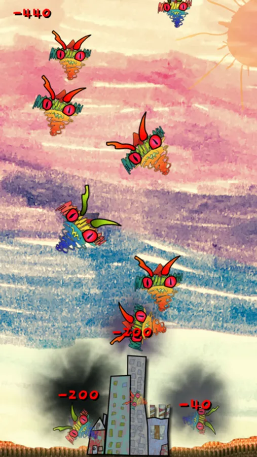 Your city will only sustain a maximum of four hits, then you lose. If a particle hits the ground, it will bring your score down.