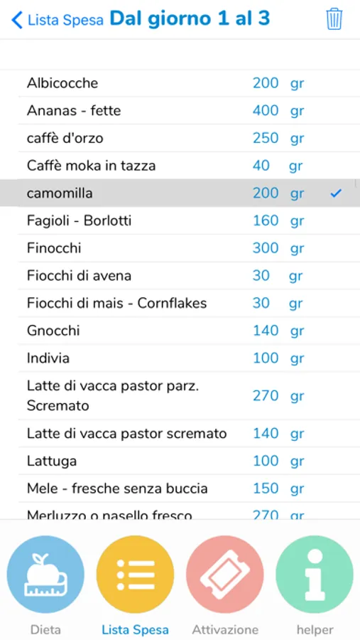 - lista della spesa e segnalazione delle alternative alimentari;