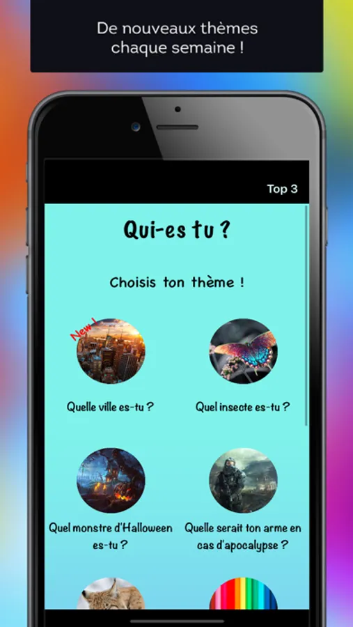 D'ailleurs, ton avis nous intéresse. Envois-nous tes suggestions sur notre page Facebook, pour les prochains thèmes à venir. Si tu n'as pas Facebook, aucun soucis ! Laisse nous un message sur Instagram (quietesvousoff) ou bien une note sur l'AppStore, avec dans ton commentaire, le thème que tu souhaiterais avoir. Avec un peu de chance, il arrivera la semaine suivante !
