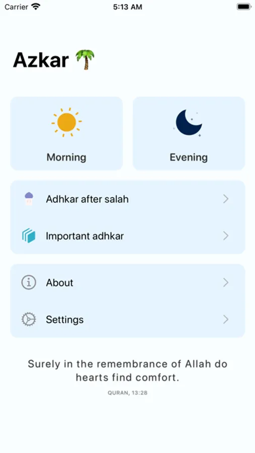 Azkar is an app which aims to help you to learn and recite daily adhkar more often.