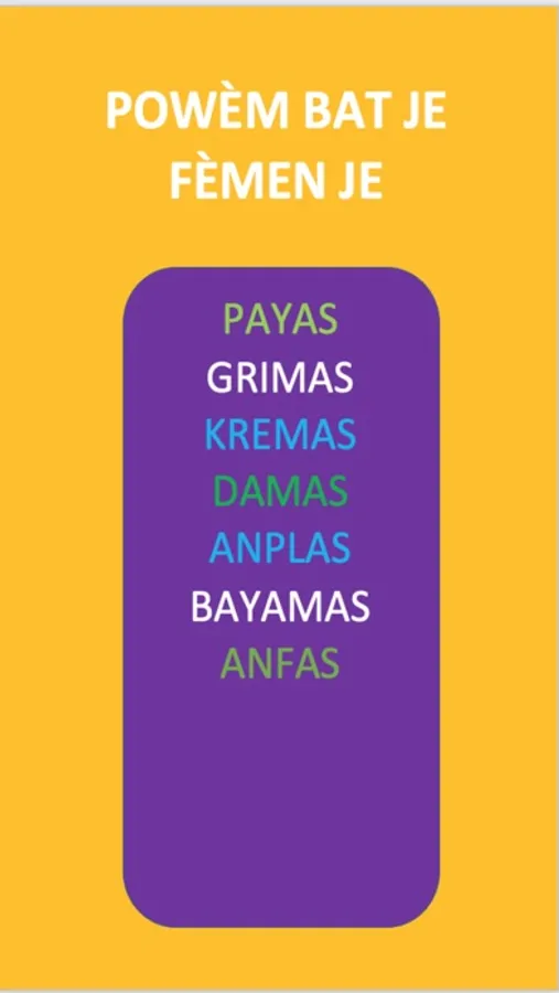 Annik tape yon lèt oubyen yon gwoup lèt, epi l ap ba ou lapoula tout mo ki fini pa lèt sa a oubyen gwoup lèt sa a.