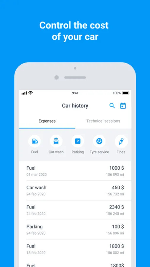 – 8 cost groups: fuel, taxes/charges, assurances, repair/maintenance, cleaning/caring, accessories/tuning, parking, penalties, etc...