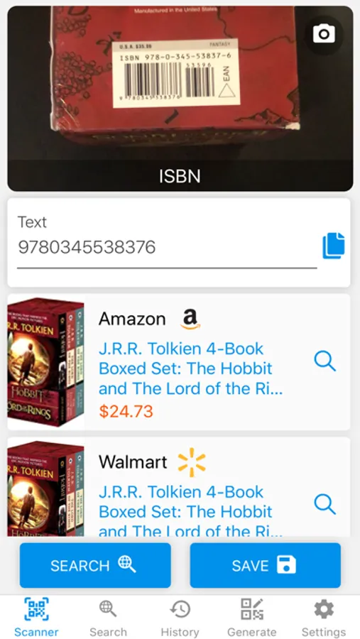 Scan the barcode or QR code of any product (such as books, electronics, clothes, etc) and find out which major retailer has the best price. Check the lowest price out there before you make a purchase!