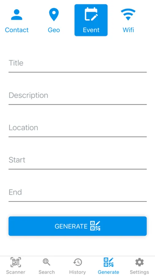 - Create your own QR code for text, url, email, tel, sms, contact, geolocation, event calendar, wifi.