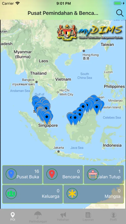 MyDIMS is an application that provides information on disasters around Malaysia to the public.Public can find information such as: