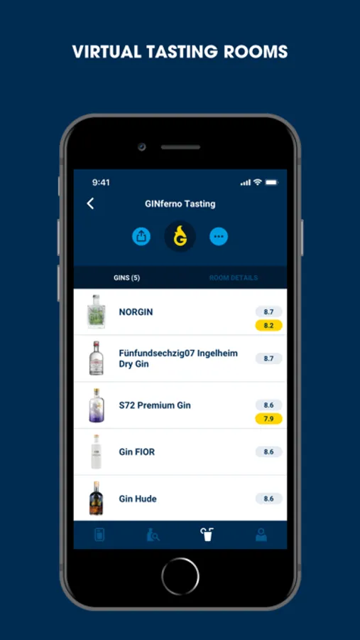 Create your personal tasting room for your next private gin tasting. Invite friends, rate the gins and see the result of your individual group.