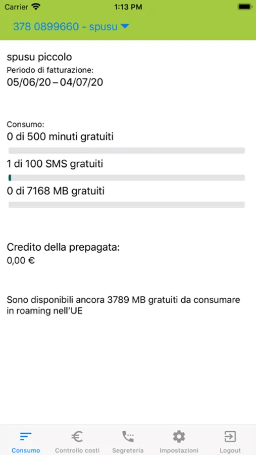 - visualizzare il tuo credito residuo