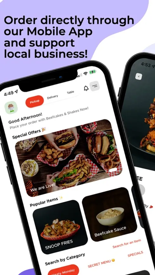 Download the Beefcakes & Shakes Mobile App today to gain access to our full menu, order through the app, receive exclusive in-app discounts and gain reward points for each order to use on future purchases!