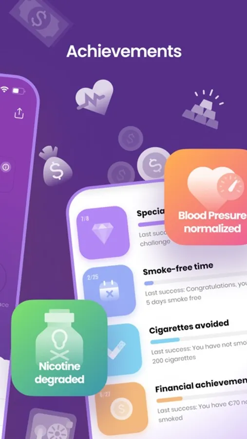 You will receive many significant achievements during smoking cessation for your health; cigarettes avoided, money saved, no smoking time, and so much more.
