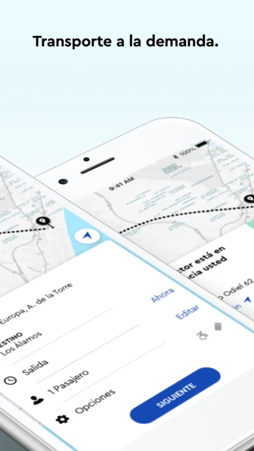 • Introduce tu dirección de origen y destino. Verás en seguida qué vehículo está disponible para recogerte.