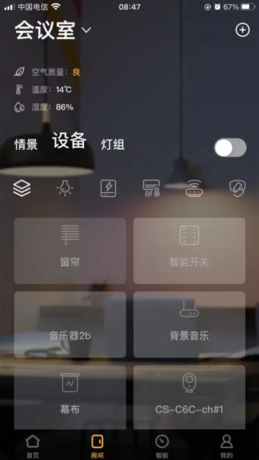 通过手机等移动设备可随时随地对场所设备进行开关,编组,设置情景等操作。