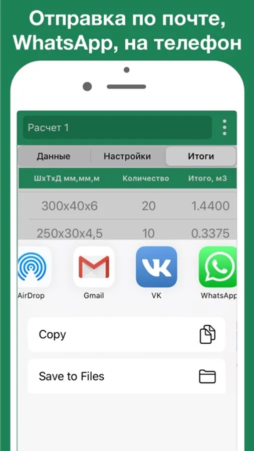 ► ввод размеров (ширины, толщины и длины) в любой удобной размерности (мм, см, м)