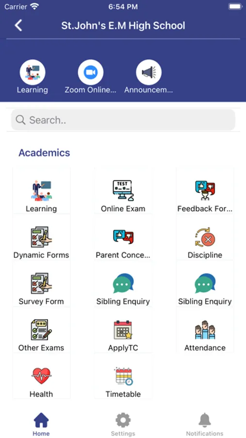 St.John's E.M High School provides communication app for parents using which they can download school announcements, Class assignments, Events.