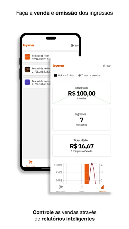 Acesse rapidamente a relação de ingressos emitidos, métodos de pagamento utilizados e controle as suas vendas através da função relatório.