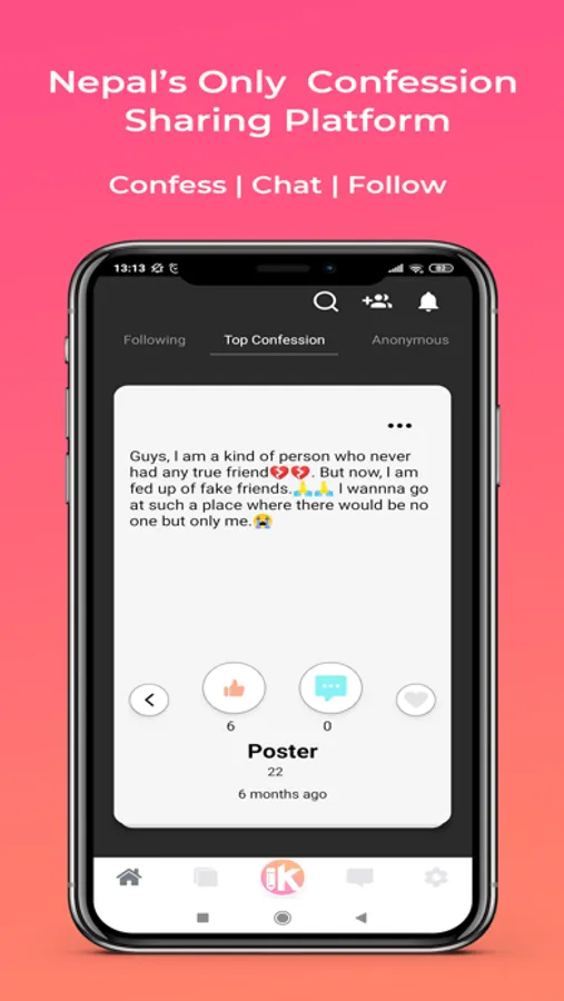 Now you can also chat with your loved ones, hide your name and age. If you want, users will only read your confession, they will never know who is behind this.