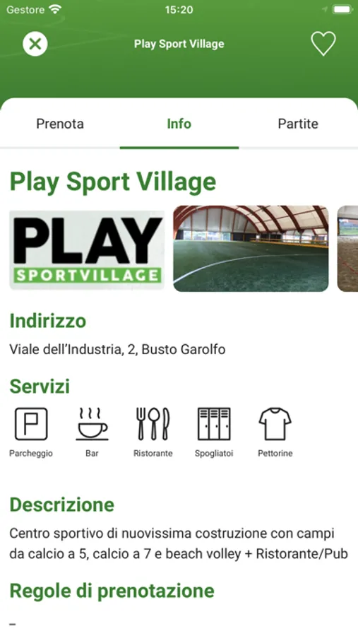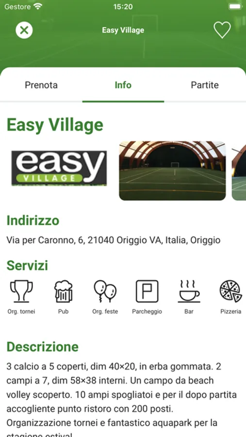 - Oltre alla prenotazione campi è possibile verificarne disponibilità e orari.