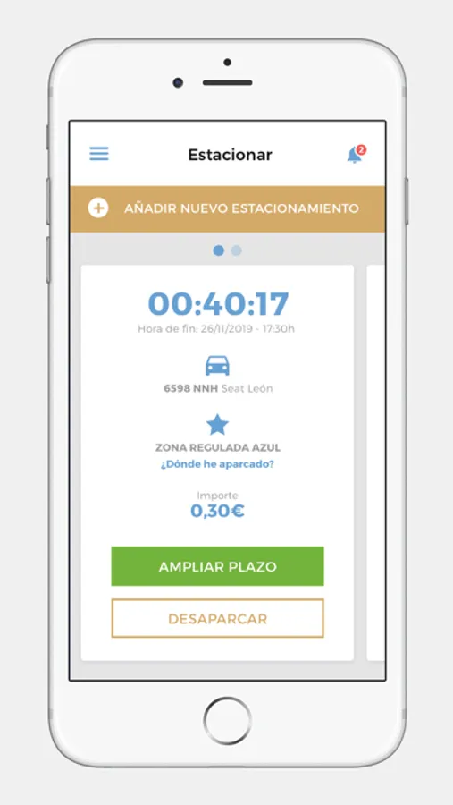 • Amplia el temps d’estacionament des del mòbil sense moure’t d’on estigues; no hauràs de tornar al cotxe ni al parquímetre per a fer-ho.