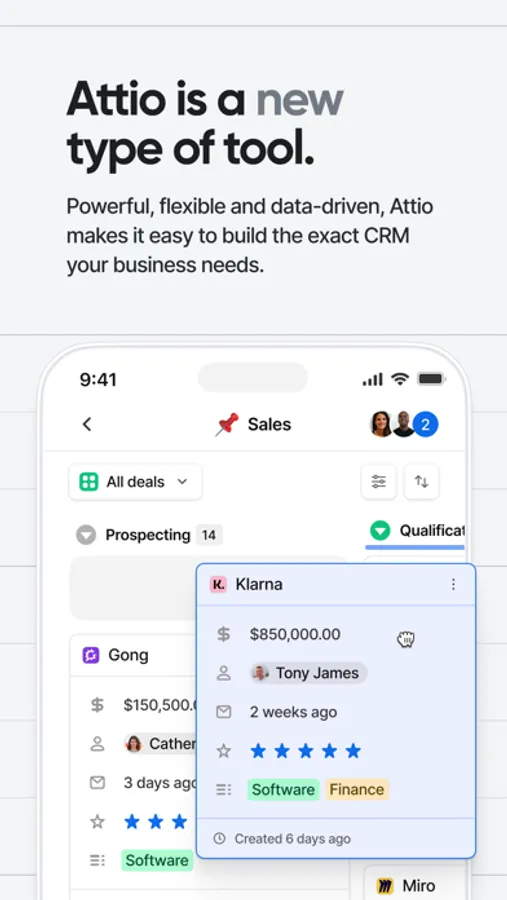Attio is a fully customizable and collaborative workspace built for your team's relationships and workflows. Designed to fit around the way you work, Attio allows you team to create your perfect CRM.