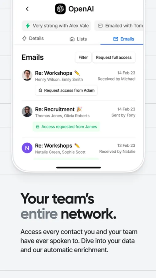 • See advanced analytics like connection strength and communication history