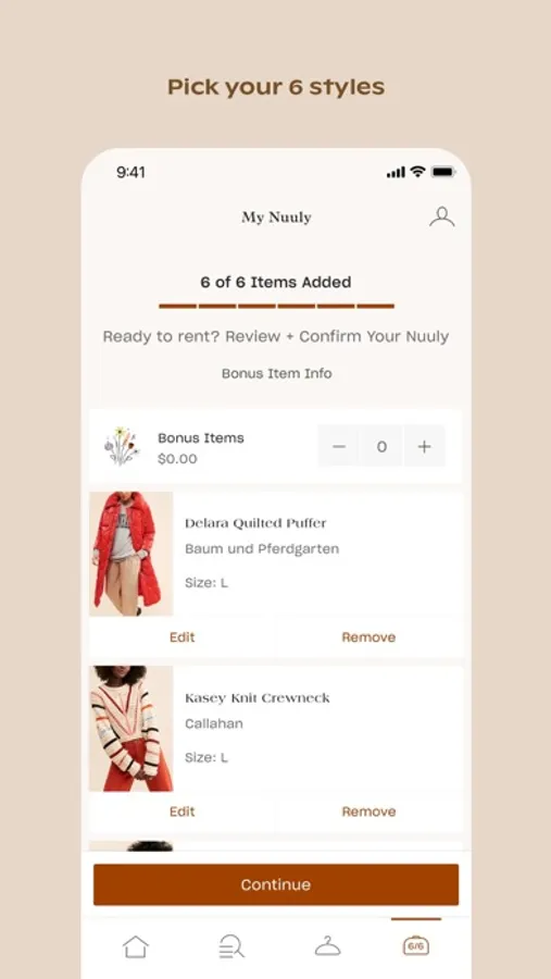 Say hi to the easiest way to Nuuly on the go. Rent any 6 styles from an ever-evolving collection of 150+ iconic and new brands for $98/month. Wear them—and re-wear them—all month long, buy what you love (usually at a discount!), return the rest and start all over again—right from your phone.