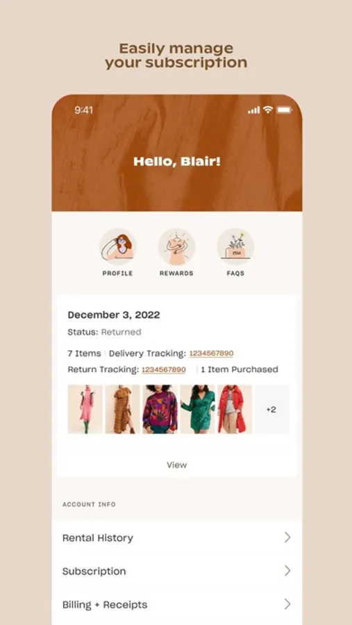 What's included: fast, free shipping both ways and professional cleaning. What's not: late or damage fees. Pausing is easy, flexible and free. With the app, you can: