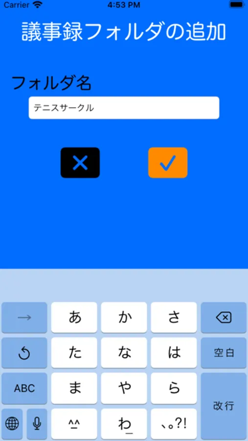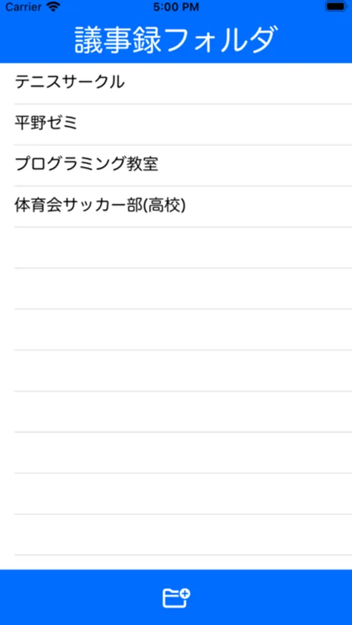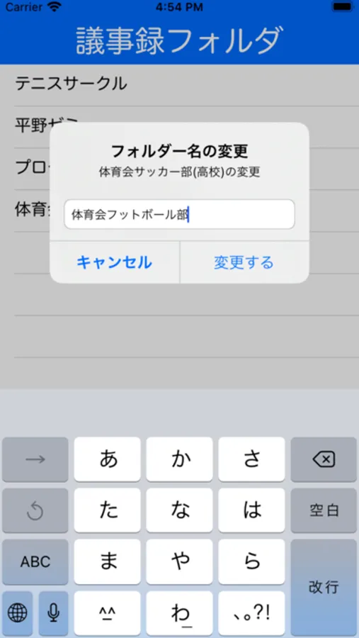 [7]議事録フォルダの名前を変更する場合は、任意のフォルダをロングタップすることで編集画面が表示されます。