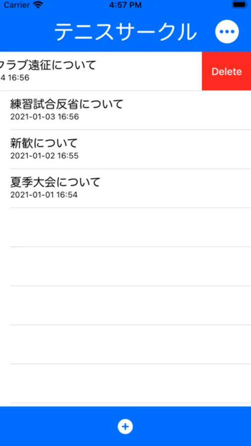 [6]議事録フォルダおよび議事録を削除するのも簡単!左にスワイプして削除できます。