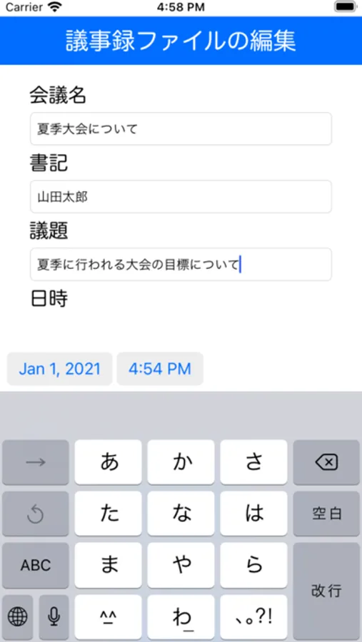 [5] 作成した議事録は、リスト一覧にある任意の議事録をタップすることで編集することが可能です。