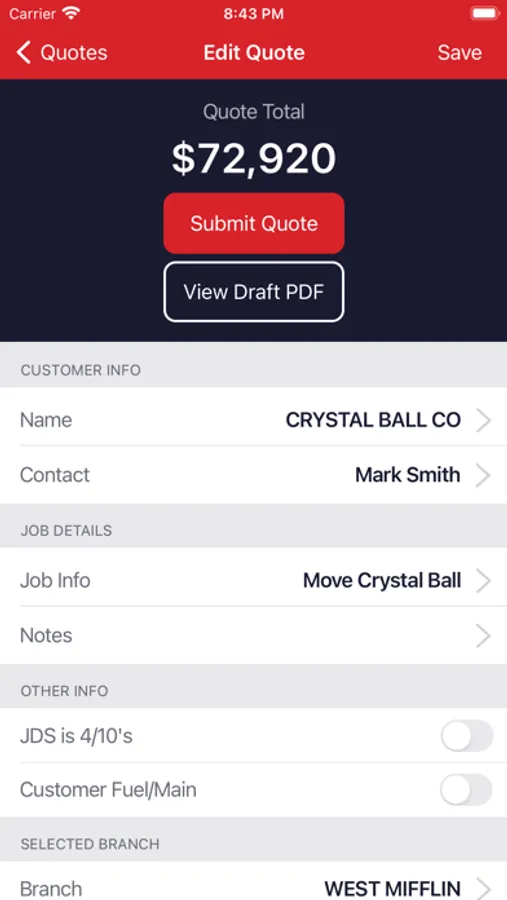 Maxim Crane Mobile provides a suite of tools for sales users to submit, manage and approve quotes for Maxim Crane equipment rentals.