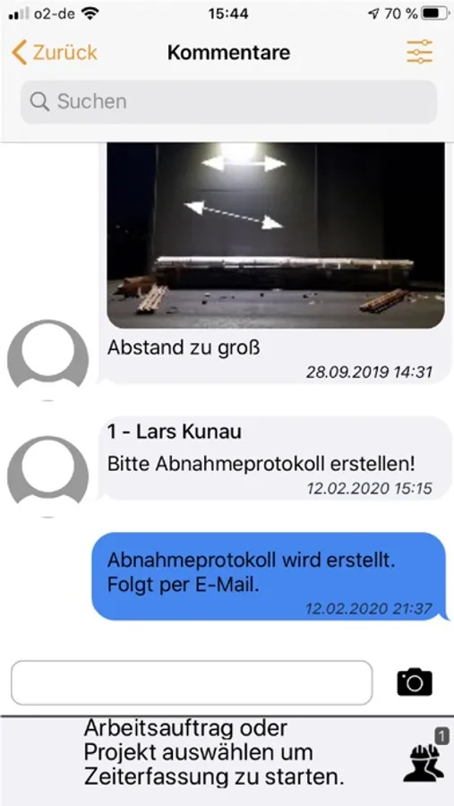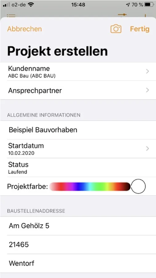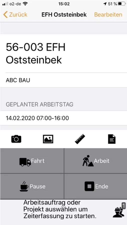 · Kunden- und Projektverwaltung mit Baustellenadresse, Ausführungszeitraum und Fotos (wie Skizzen und besonderen Hinweisen)