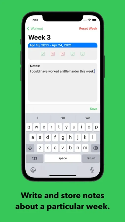 - Record notes for any week of a particular habit.