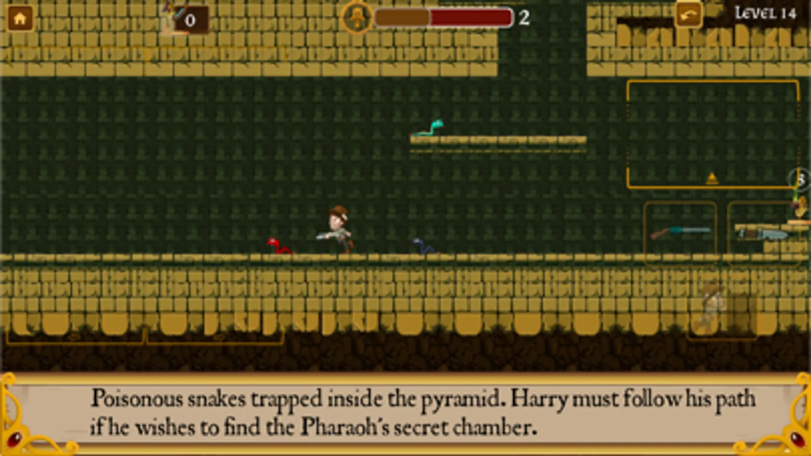 To reach his destination, Harry must overcome the dangers that the pyramid holds.