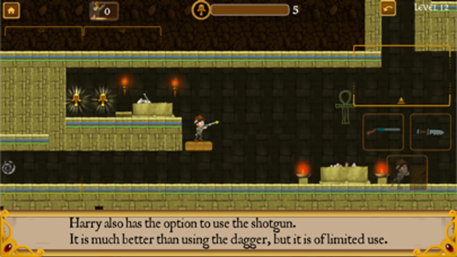 Harry can also make use of his shotgun, although in order to do so, he must find ammunition in strategic places in the pyramid.