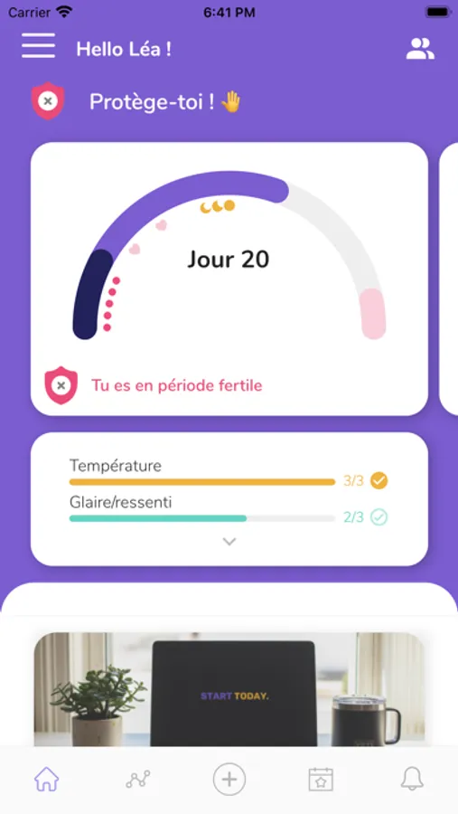 • Pas de prédiction de ton ovulation, l’appli t’indique précisément où tu en es au fur et à mesure
